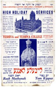 Music has the power to transport words beyond the intellect and infuse them with emotion, a key to opening hearts and souls in prayer. The shofar blasts on Rosh Hashanah are wordless cries, visceral primordial forces which evoke fear and trembling. Imagine a High Holy service punctuated by the call of the shofar in the Nathan Lamport auditorium in Yeshiva’s Main Building (now Zysman Hall), an awe-inspiring space for prayer during the Days of Awe.